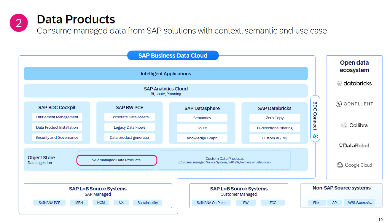 • Kunden können diese nutzen oder eigene Custom Data Products (z. B. für Non-SAP-Systeme) oder Derived Data Products ableiten.